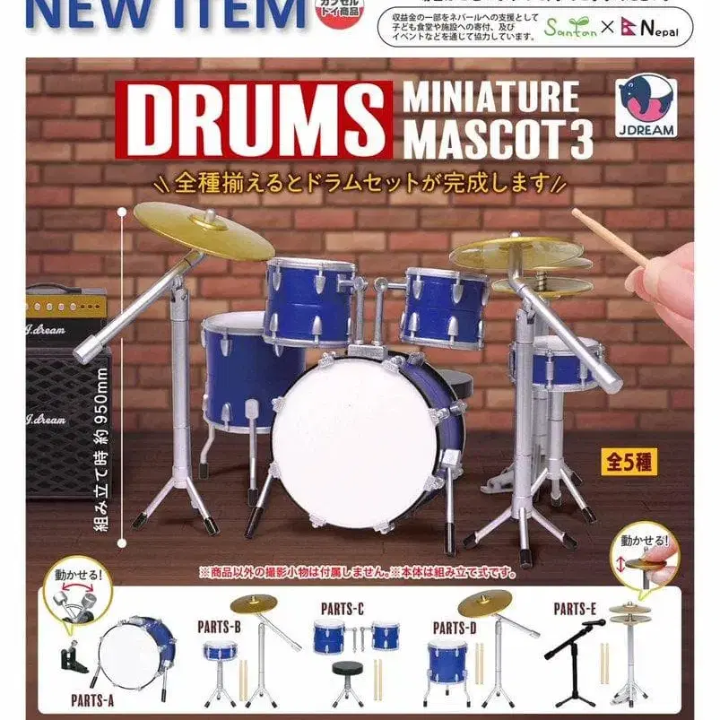 미니어처 드럼 마스코트 3종 풀 컴프 세트