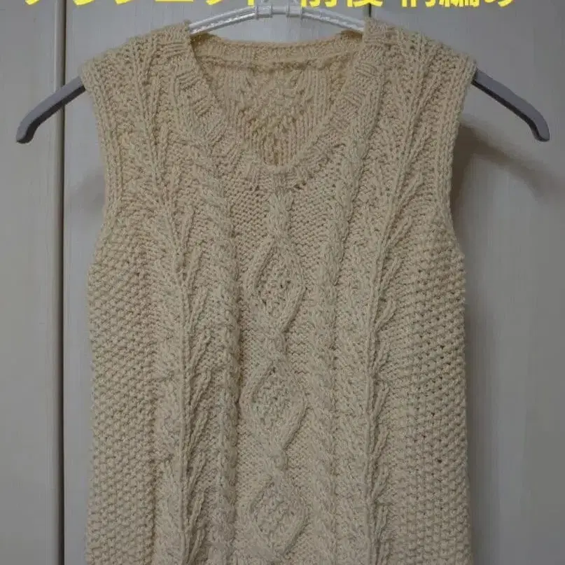 [ 손뜨개질 미사용 ] 아란 니트 베스트 아이보리 V넥 패턴 핸드메이드