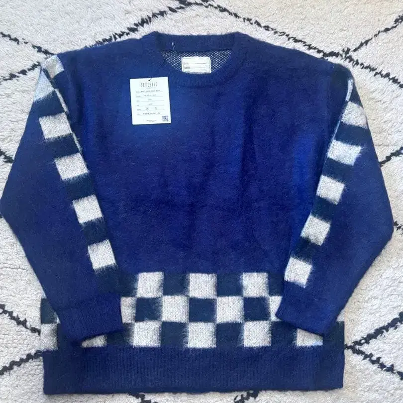 SEVESKIG 네이비 체크 무늬 스웨터 L 차커 플래그