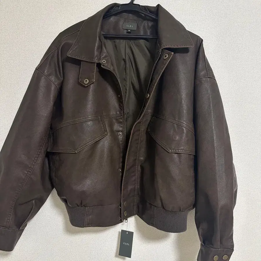 CLEL 빈티지 디자인 인조 가죽 블루종 브라운