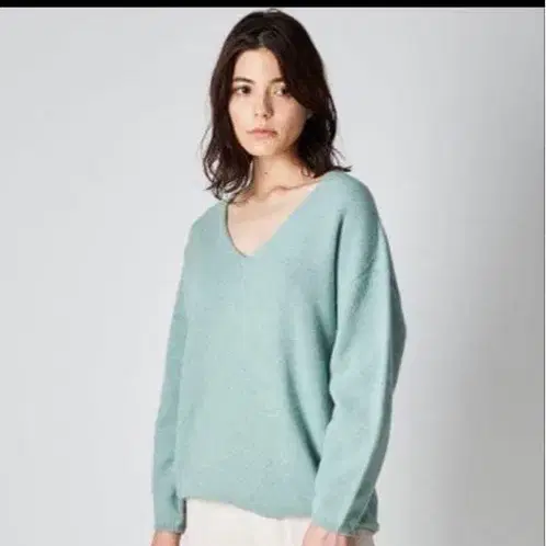 민트 그린 V넥 긴팔 니트, 캐주얼 스타일에 최적.