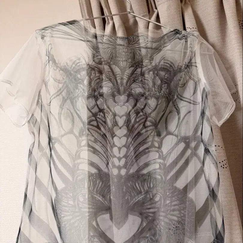 시스루 그래픽 프린트 반팔 T셔츠