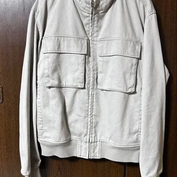 화이트 집업 자켓 프론트 포켓 부착