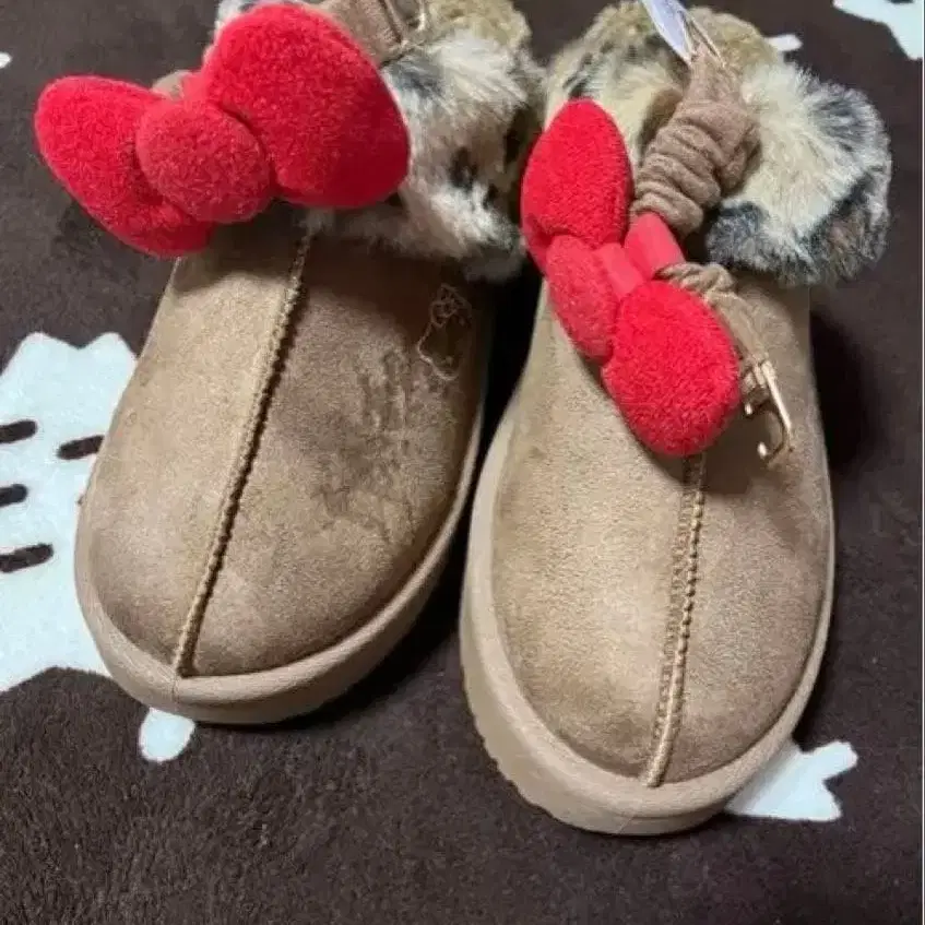 시마무라 x 헬로키티 콜라보 무스탕 슬립온