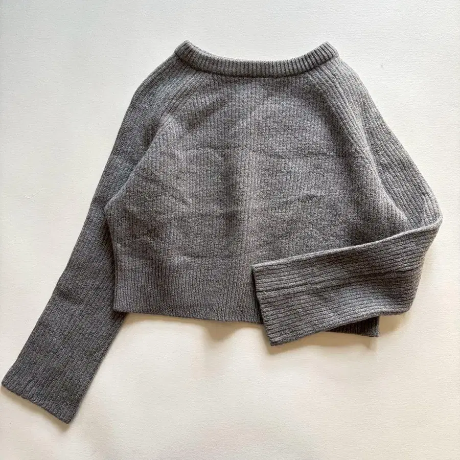 새상품급 이치앤티크 울 100% 숏 기장 리브 니트 프리 그레이