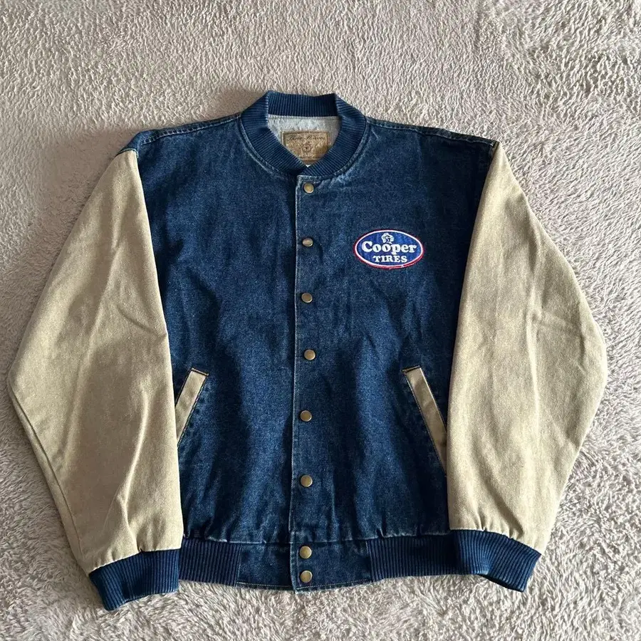 90s 쓰리 리버스 데님 바시티 자켓 기업 로고 모터계
