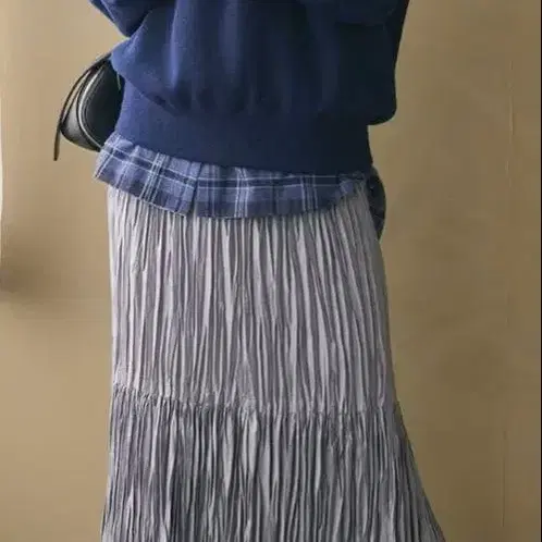 밑단의 양을 줄이고 랜덤한 플리츠로 마무리하여 캐주얼한 코디에 쉽게 활용할 수 있는 디자인.