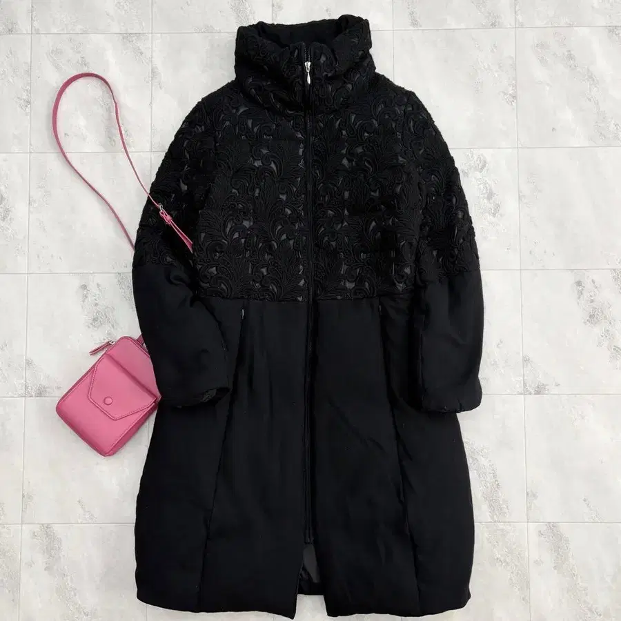 새상품급 더마 컬렉션 스탠드 칼라 꽃무늬 레이스 다운