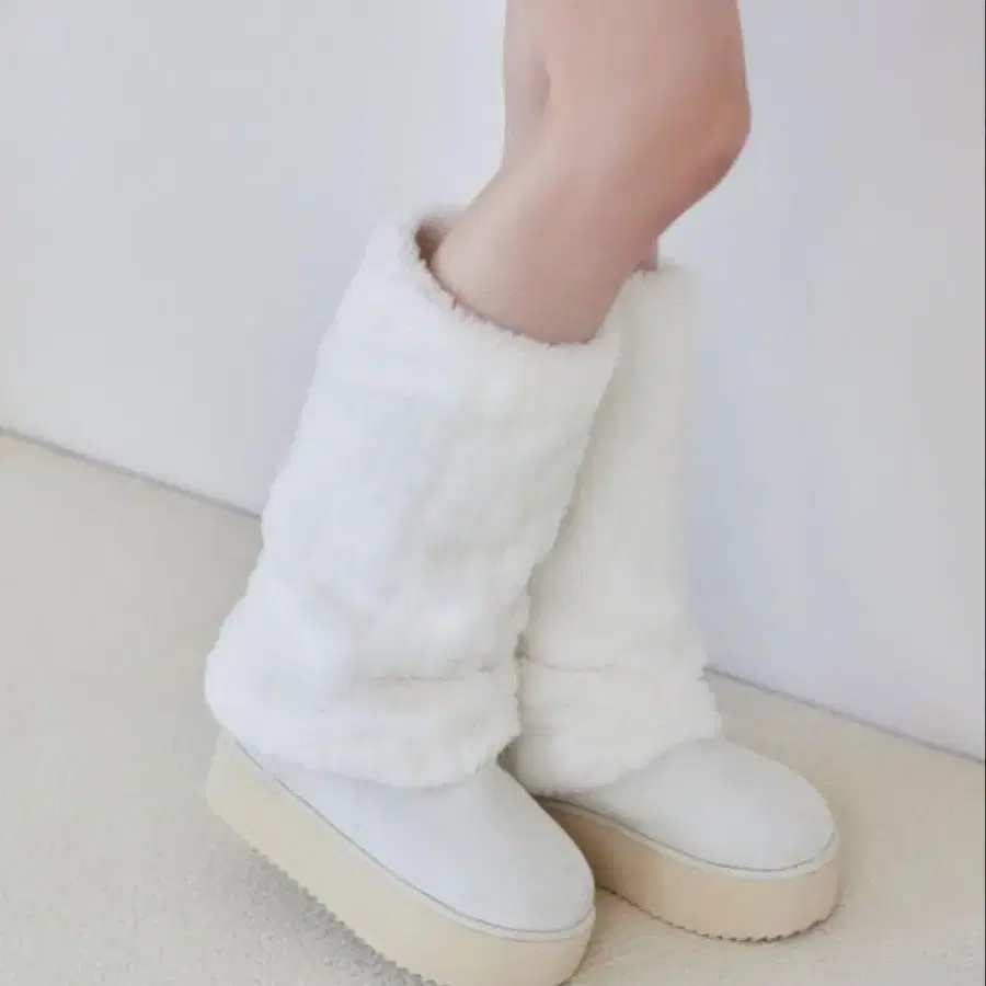 NICE CLAUP 2way 페이크 무스탕 롱 부츠 화이트 L 사이즈