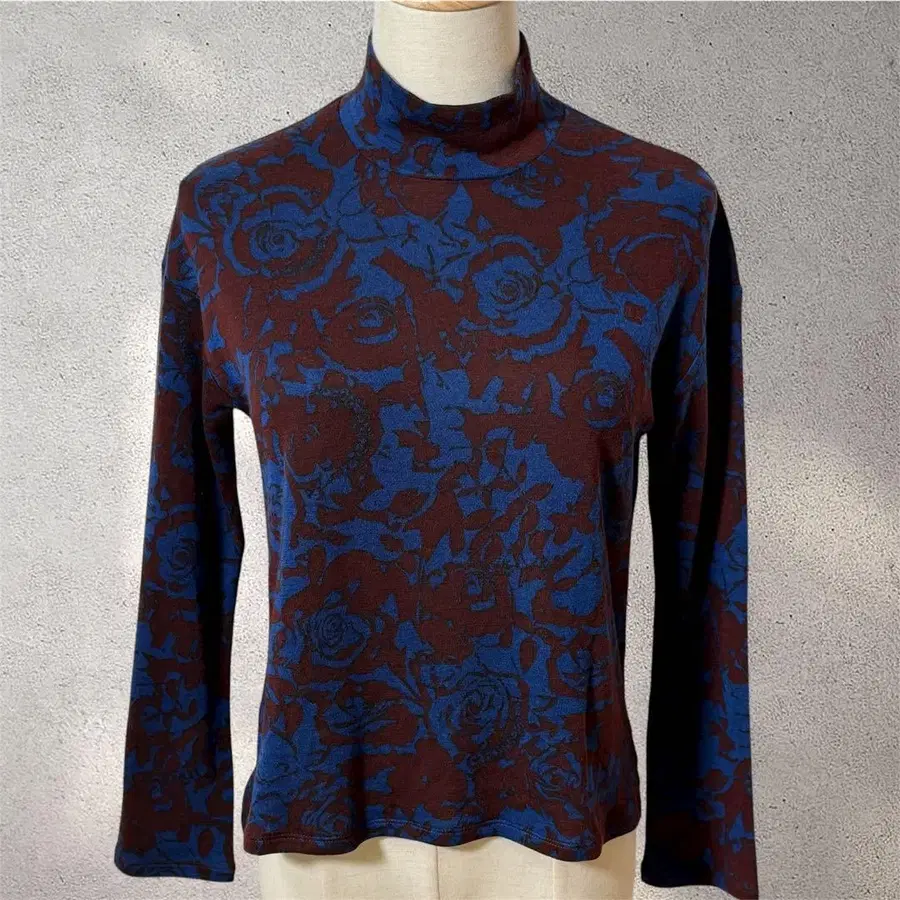 [ 조르주르슈 ] 36/티셔츠/장미 무늬/적자색/하이넥/여성빈티지/긴팔