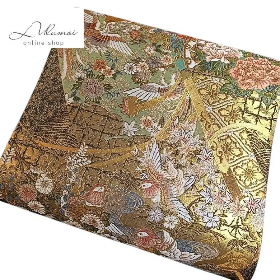 LULU15 후쿠로 오비 새 꽃 원앙 봉황 칠보 금 블랙