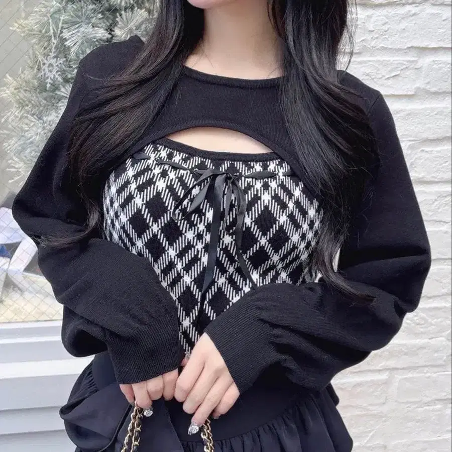 INGNI 체크 무늬 데콜테 오픈 니트 새상품