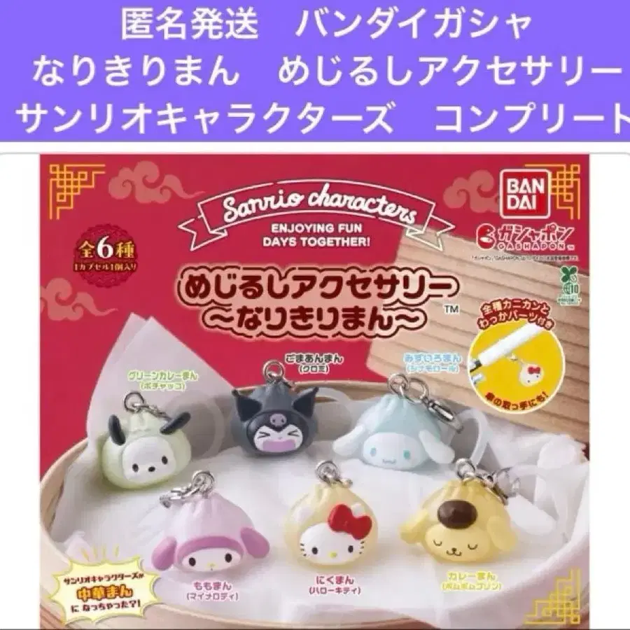 익명 배송 반다이 가샤폰 산리오 캐릭터즈 나리키리만 6개 세트 1