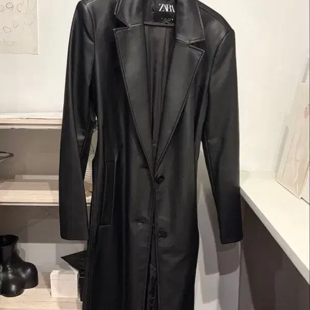ZARA 블랙 롱 가죽 자켓 S 새상품급