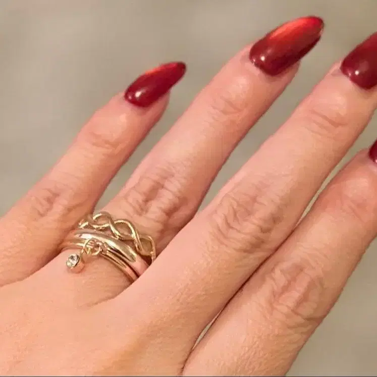 H.P.FRANCE 골드 컬러 3연 반지 스톤 포함 레이어드 11호