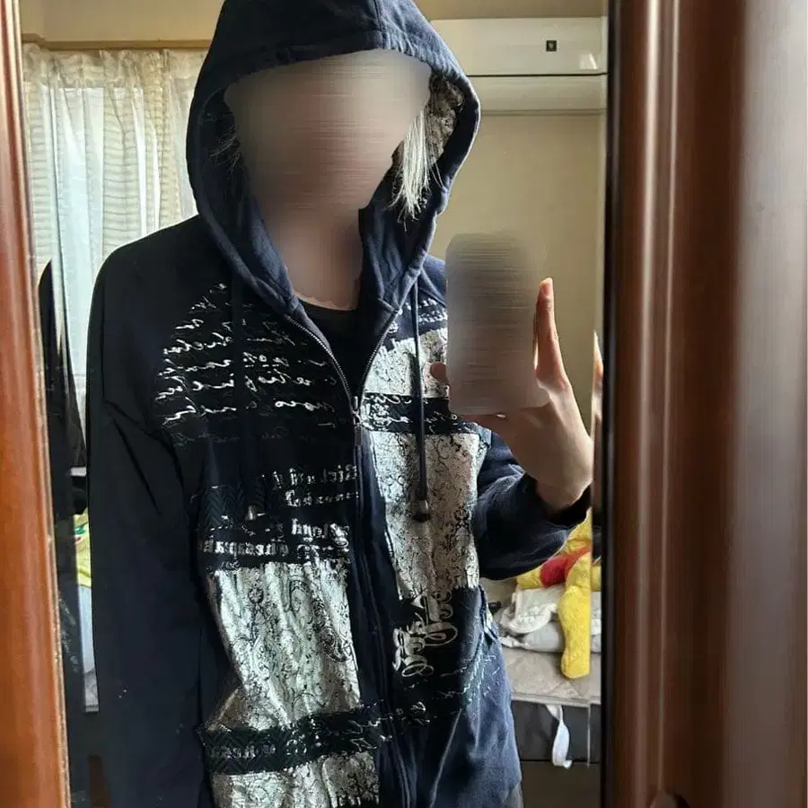 y2k 00's archive 실버 라메 가공 지퍼 후드티 너드