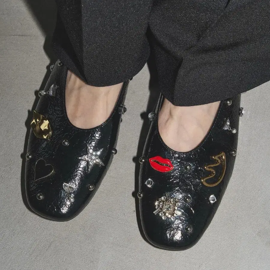 LE TALON GRISE 가죽 SURREAL 모티브 플랫