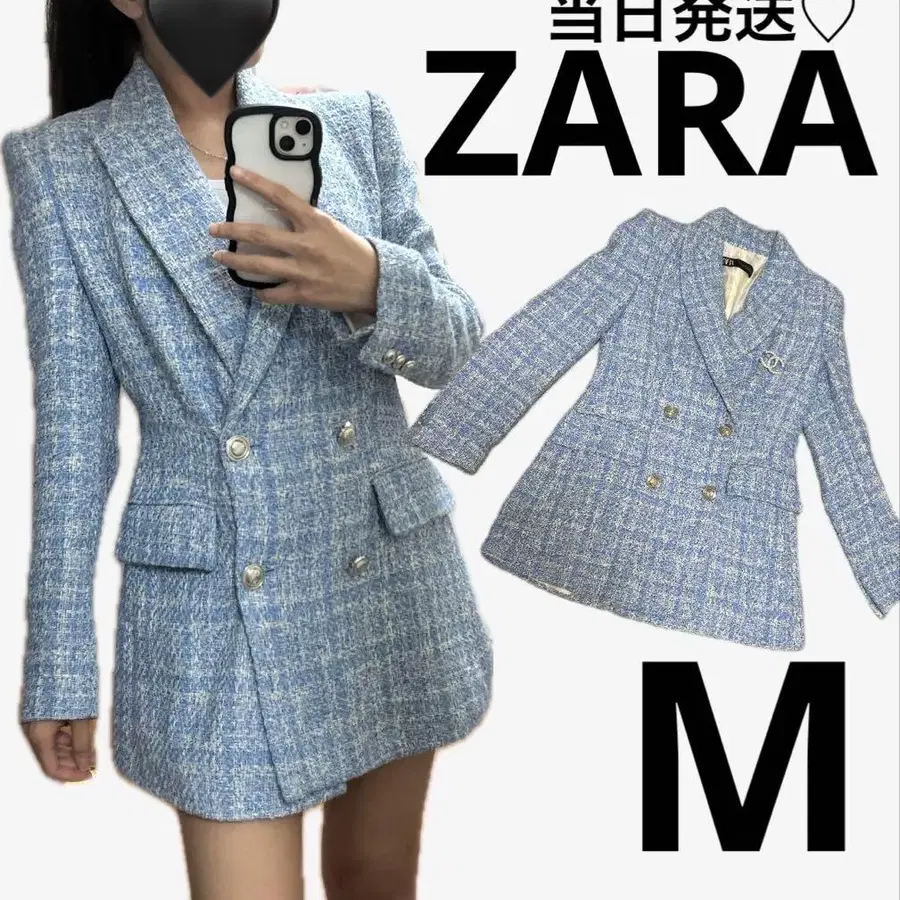 당일 발송 ZARA 트위드 자켓 M 블루 더블 버튼 고급 한국 스타일