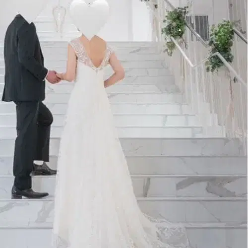 위에서부터 착용 가능한 슬렌더 라인의 레이스 트레인과 머메이드 드레스 세트입니다. 머메이드 드레스 단독으로도 사용 가능합니다. 2025년 10월에 사전 촬영과 본식에서 2번 착용했습니다. 착용 후에는 예식장에서 클리닝 + 진공 팩을 받았습니다. 원래 320,000엔의 드레스이므로 원단감 등은 훌륭합니다. 세트이므로, 레이스 트레인을 벗으면 결혼식과 피로연에서 분위기를 확 바꿀 수 있습니다. 또한, 사진에 착용한 3m 베일도 함께 보내드립니다. 어느 정도 기간 동안 판매되지 않으면 폐기 처분할 예정이므로, 가능한 범위 내에서 원하시는 부분은 최대한 맞춰드리고 싶습니다. 잘 부탁드립니다. - 디자인: 레이스 트레인 포함 백 오픈 - 스타일: 레이스 트레인 → 스트레이트 라인 드레스 → 머메이드 드레스 - 색상: 화이트 방문해 주셔서 감사합니다. 사이즈 - M