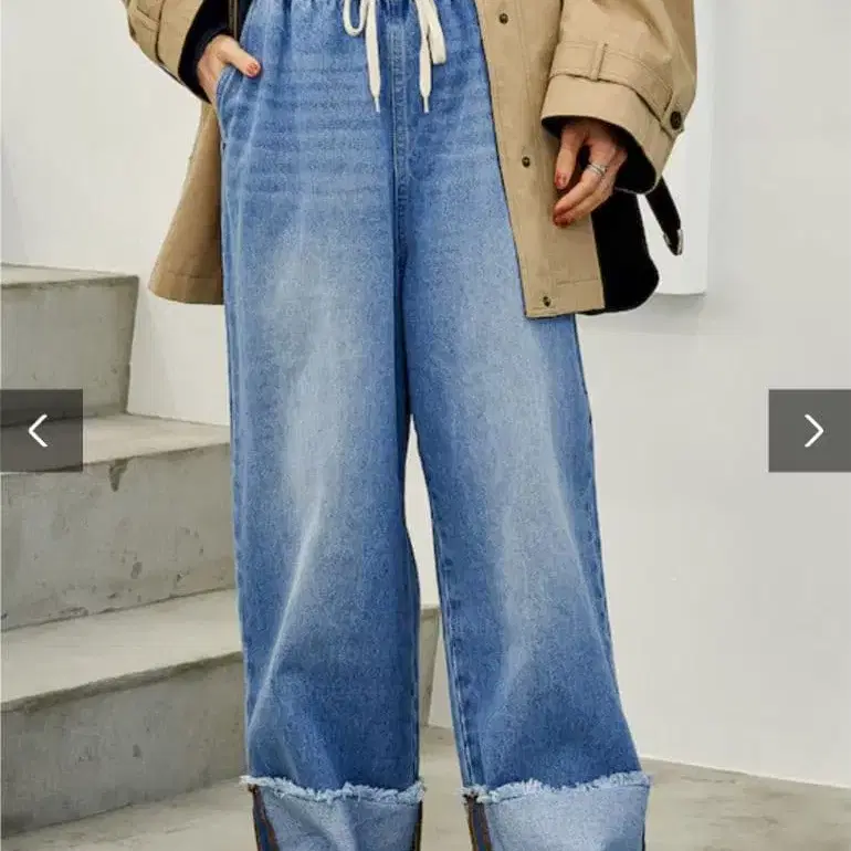 프릭스스토어 워시 가공 롤업 이지 데님 팬츠