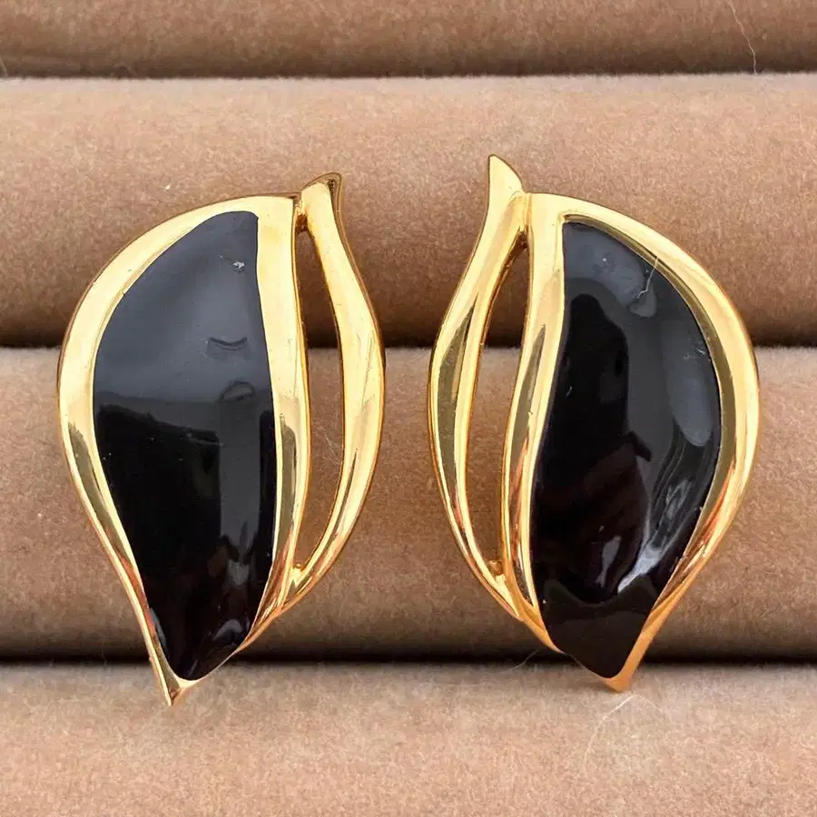 디자인: 艶やかな 골드톤 메탈과 광택 있는 시크한 블랙 에나멜을 조합한, 모던하고 세련된 리프 디자인.
