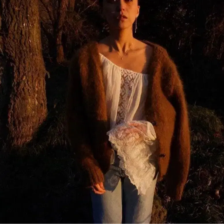 nowos 브라운 모헤어 가디건