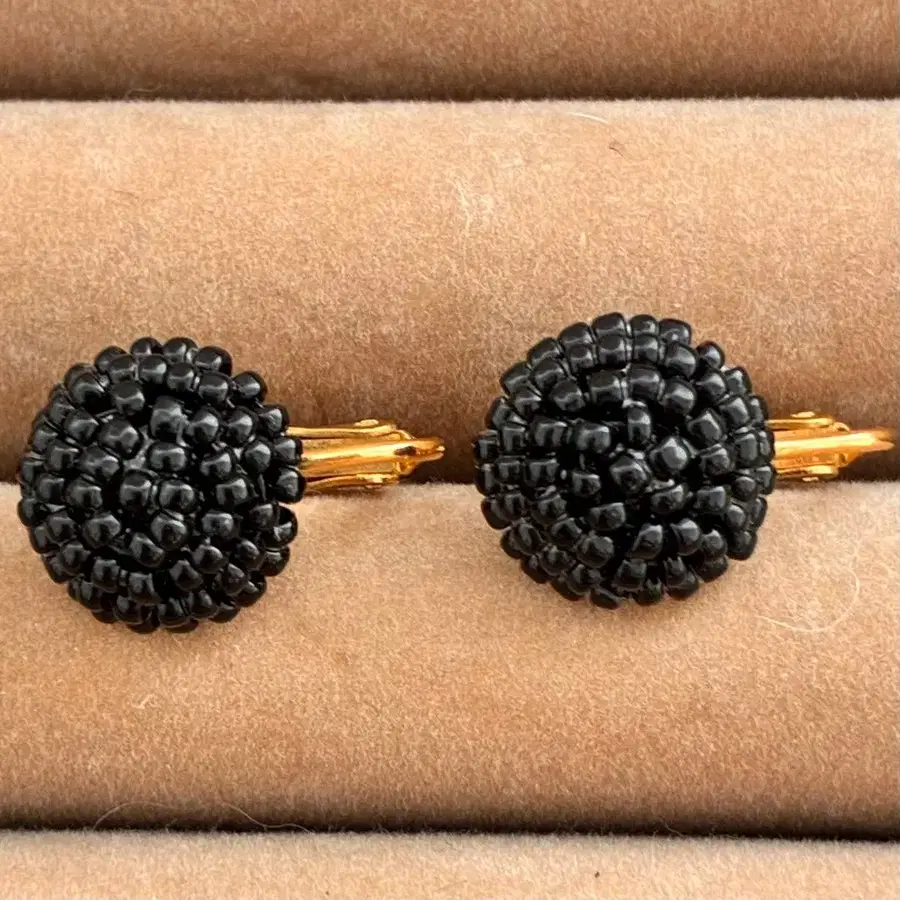 새상품급 NAPIER 네이피어 블랙 비즈 통통 나사식 귀찌 빈티지 각인