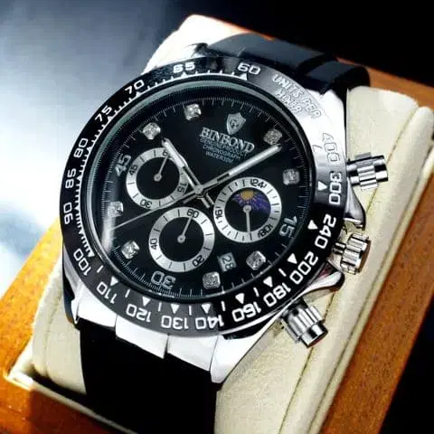 크로노그래프 쿼츠 BINBOND 블랙 남성용 워치 손목시계 보증 포함