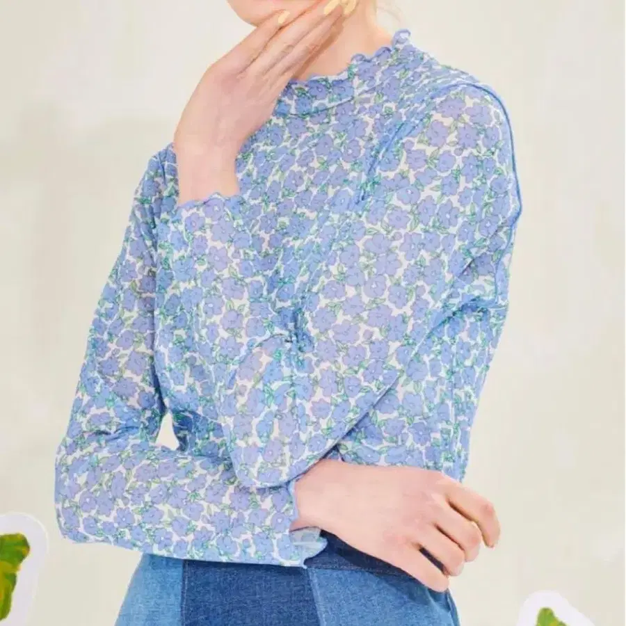 poppy 아사기니뇨 플라워 시스루 상의 시어 탑