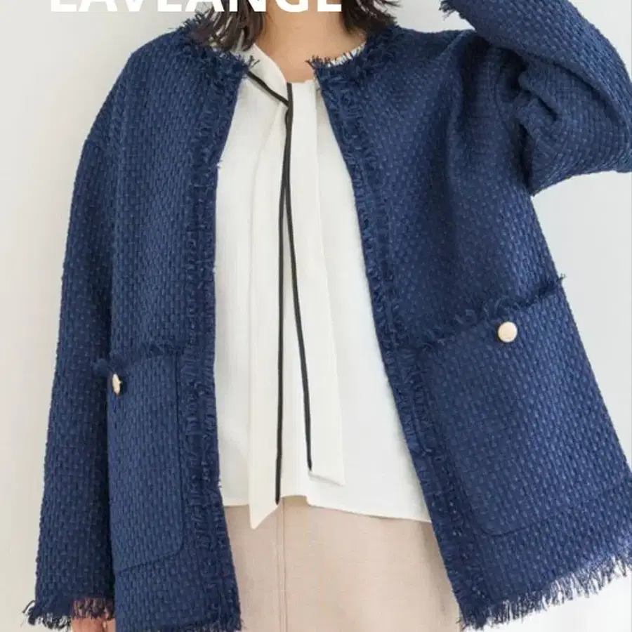 LAVEANGE 라비앙제 트위드 자켓 네이비 LL 골드 버튼