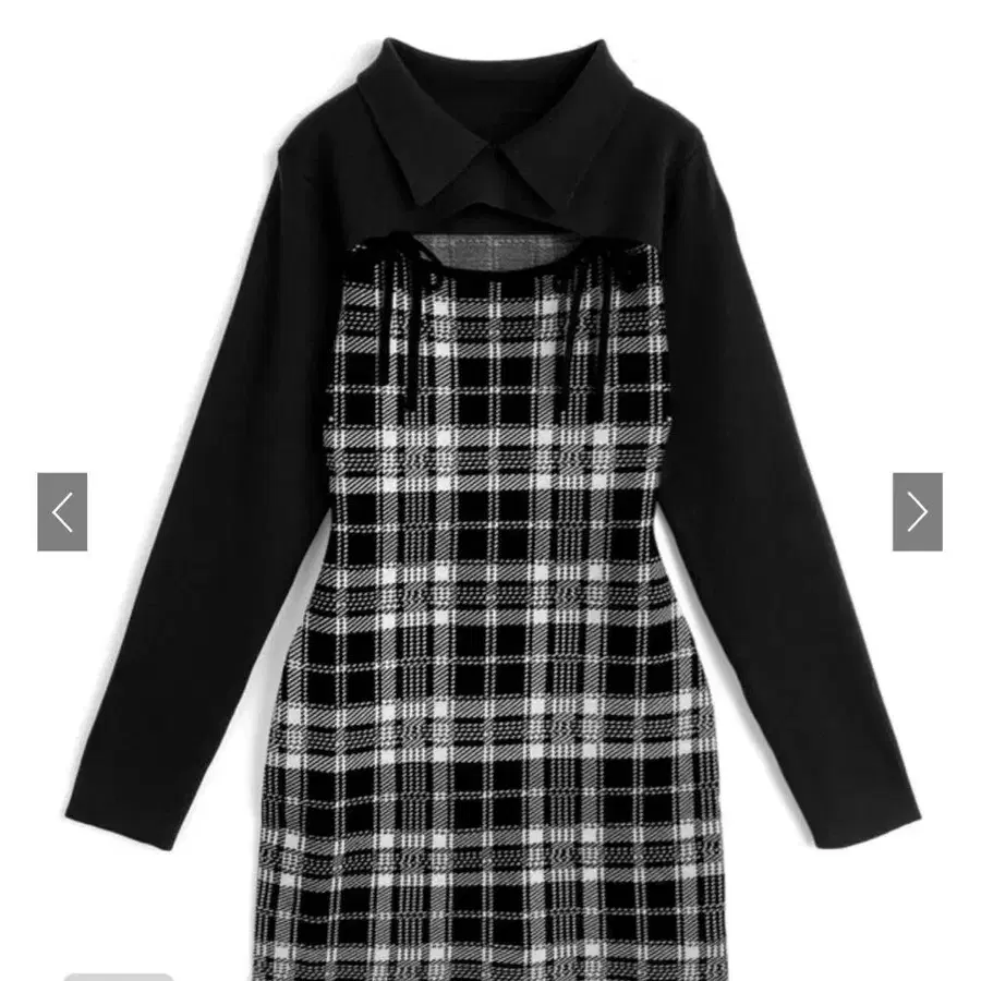 [ 미사용 새상품 ] 체크 무늬 프론트 오픈 리본 니트 미니 원피스
