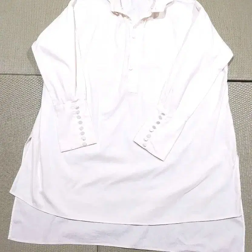 UNIVERSAL TISSU 면 100% 잔골 블라우스 화이트 튜닉