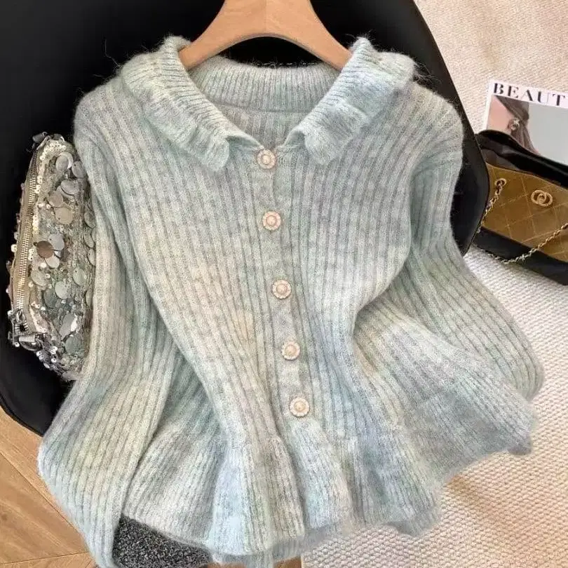민트 그린 리브 니트 스웨터