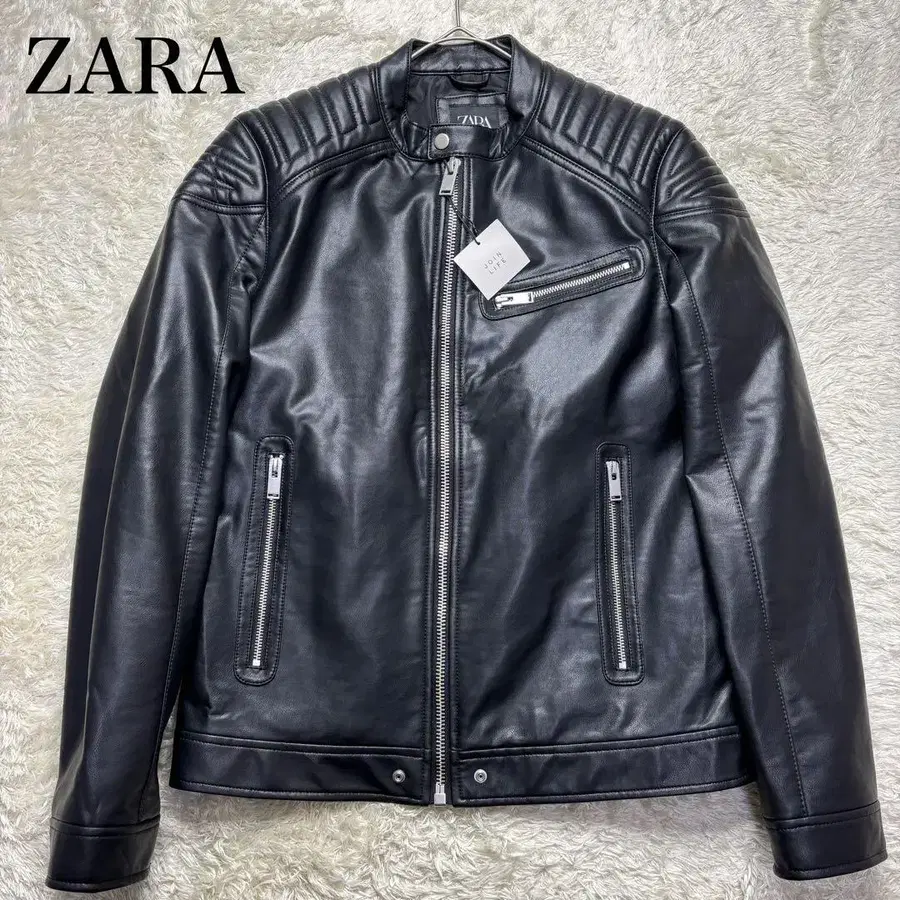 [미사용 보관품] 자라 페이크 레더 라이더스 바이커 자켓 블랙 L