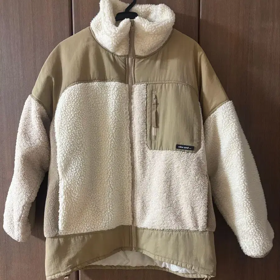 베이지 플리스 자켓 하이넥