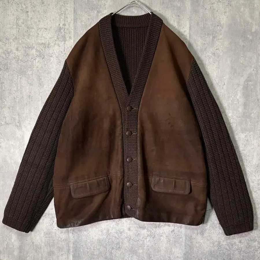 유로 빈티지 가죽 니트 절개 자켓 가디건 브라운 독일