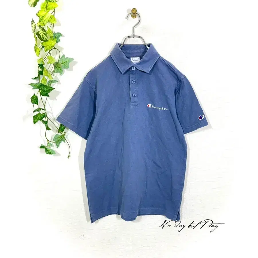 챔피온 피케 셔츠 반팔 로고 자수 블루 M 사이즈 캐주얼 골프