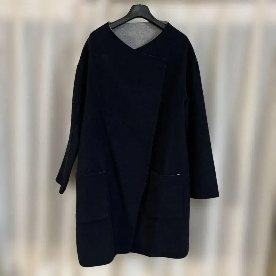 파라 디테일 롱 코트 네이비 그레이 리버서블 울 혼방