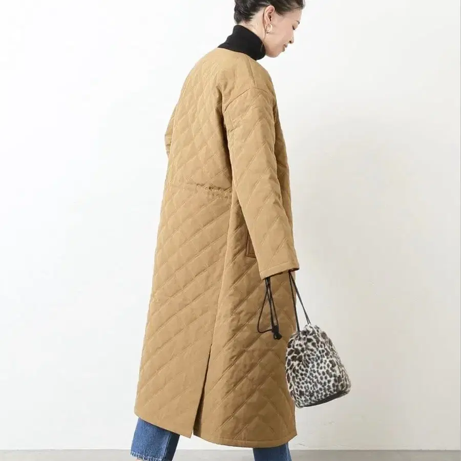 저널 스탠다드 퀼팅 노카라 롱 코트