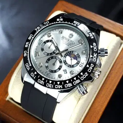크로노그래프 쿼츠 BINBOND 실버 남성용 워치 손목시계 보증
