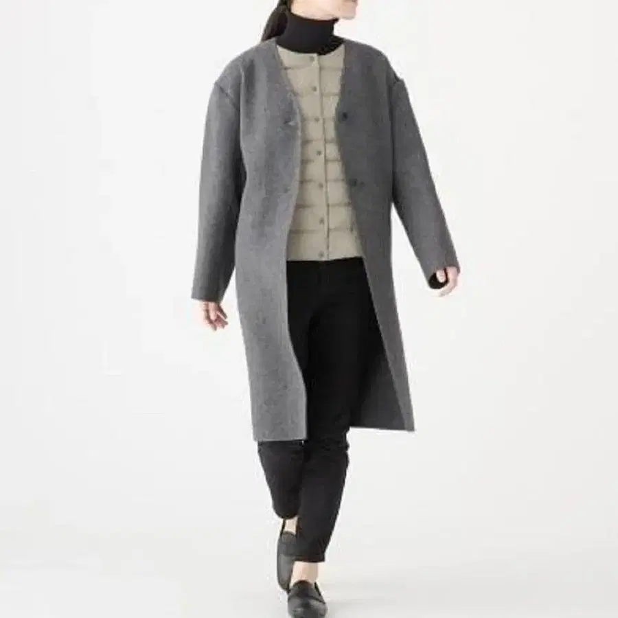 무인양품 울 혼방 더블 페이스 노카라 코트 L