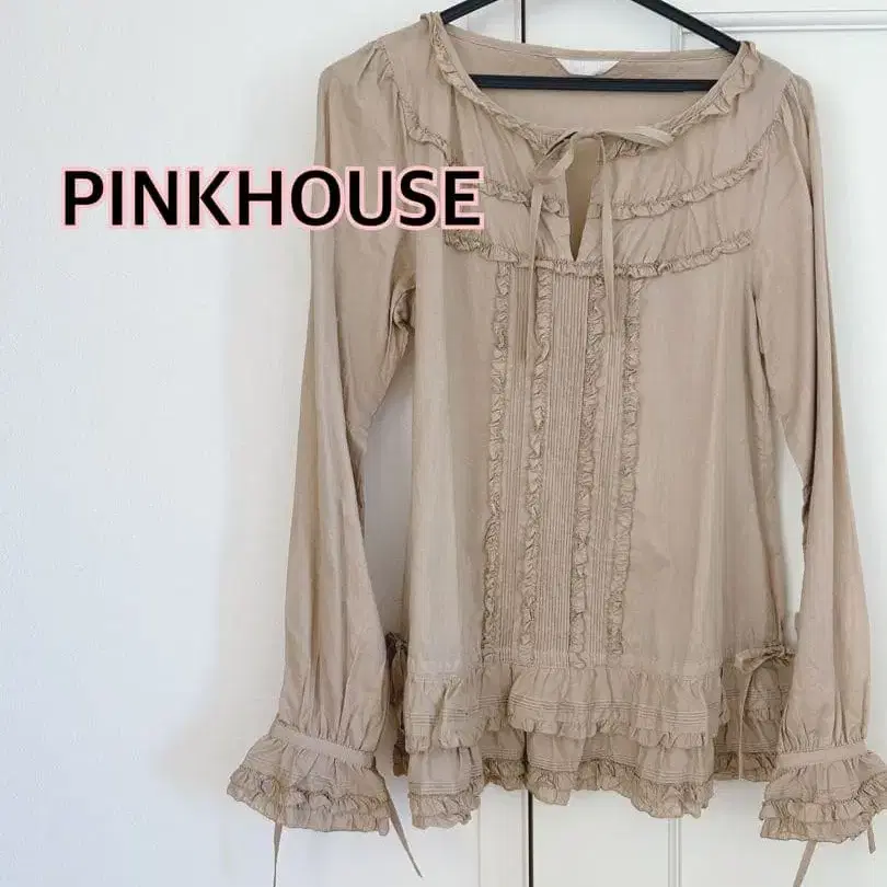 [ 새상품급 ] PINKHOUSE 베이지 프릴 긴팔 블라우스