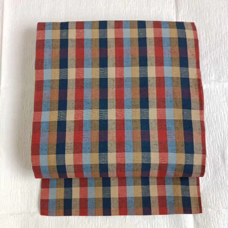 빨간색 x 파랑 x 스카이블루 x 베이지 체크 무늬 나고야 오비