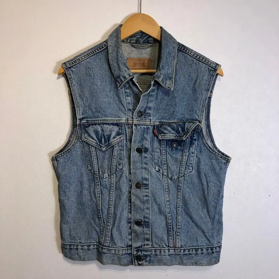 [새상품급] 빈티지 블루 슬리브리스 데님 자켓