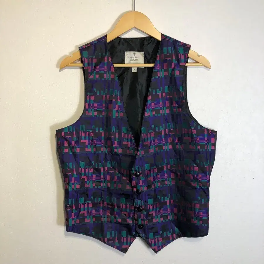 [새상품급] 빈티지 기하학 패턴 슬리브리스 베스트 퍼플 레트로