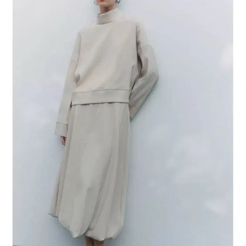 ZARA 셋업 하이넥 티셔츠 & 벌룬 스커트 에크루