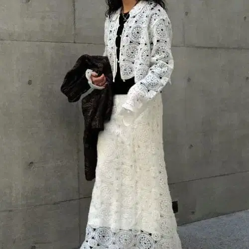 UND LACE LIKE KNIT SEMI FLARE SKIRT