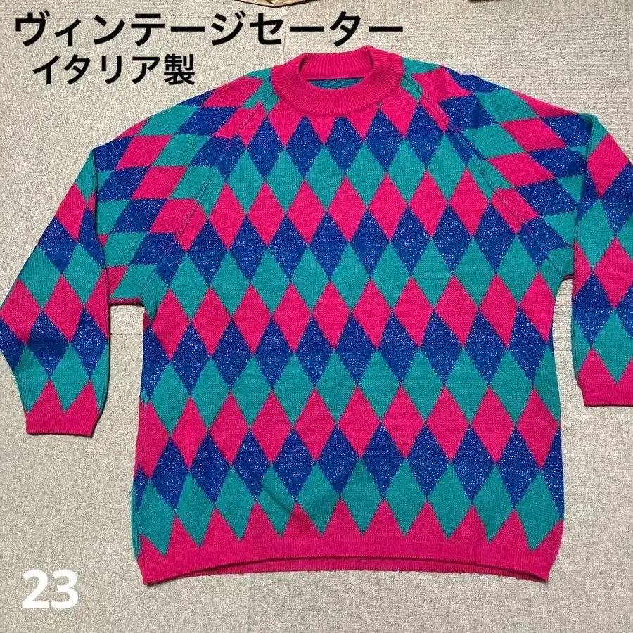 빈티지 이탈리아제 컬러풀 다이아몬드 패턴 니트 스웨터