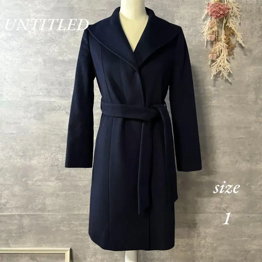 UNTITLED 울 롱 코트 여배우 옷깃 벨트 네이비 1 사이즈