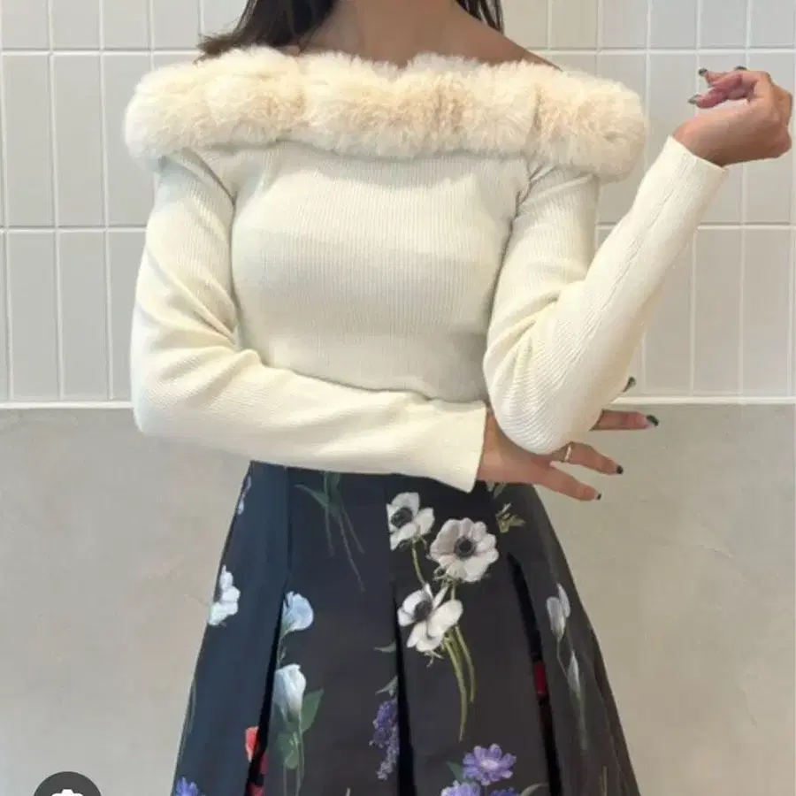 에이미 eimy 퍼 트리밍 오프숄더 니트탑 여성용